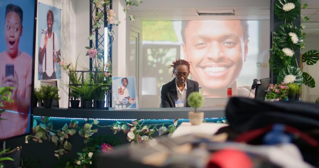 Setzen Sie auf flexible Bereiche: Bühne, Co-Creation-Tische, Ruheinseln, schnelle Pitch-Zonen. So wechseln Energie und Fokus organisch. Kommentieren Sie, welche Zone Ihre Teilnehmer am liebsten nutzen würden und weshalb.